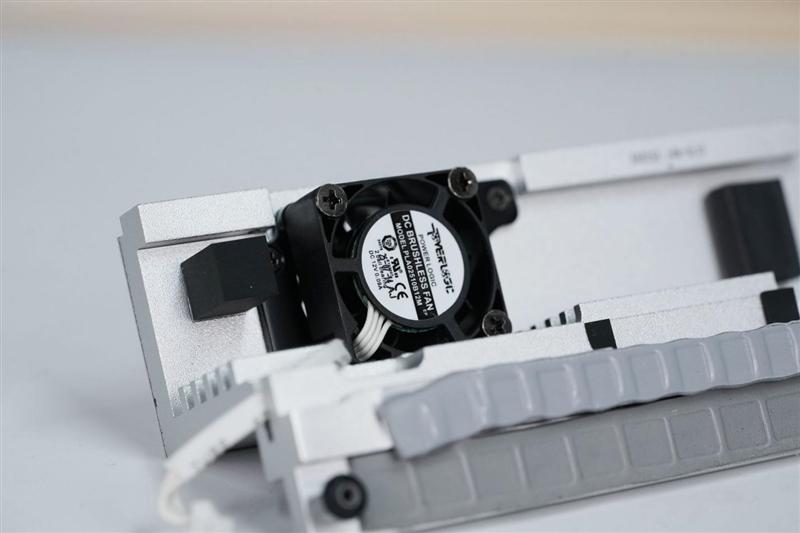 换一个角度可以清楚的看到SSD位置的多层结构,在寸土寸金的ITX主板上通过多层叠加的方式,巧妙的将PCIe 5.0 SSD的M.2插槽布置在主板芯片组的上方。