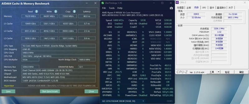 微星MPG X870I EDGE TI EVO WIFI 刀锋 钛主板不只是CPU性能释放彻底,对内存的性能发掘也提供了一系列工具方便玩家使用,我们测试配合Memory Try It!功能、Latency Killer低延迟模式、High-Efficiency Mode高性能模式和Memory Timing Preset内存时序调整,最终让内存性能相比默认状态提升了约50%,效果非常惊人。